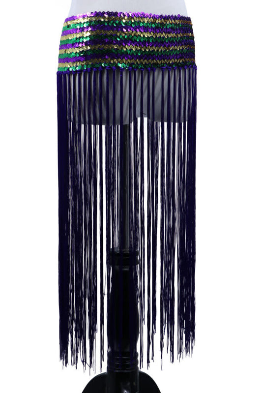Stretchy Belt w/ Fringes: Mardi Gras - O/S