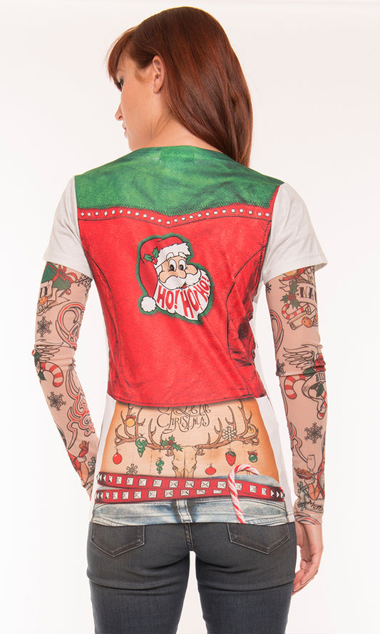 Ladies Sweater Tee: Xmas w/ Tattoo Sleeves