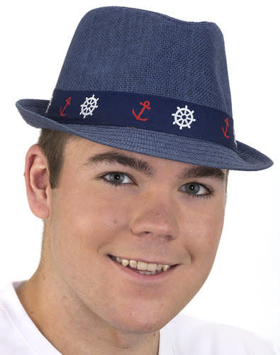 Toyo Fedora Hat w/ Printed Anchors: Blue