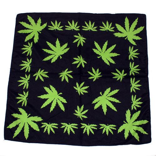 Bandana: Black with Green Cannabis Leaves (BDNA-121)