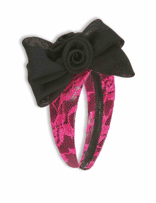 80's Lace Headband with Bow: Neon Pink