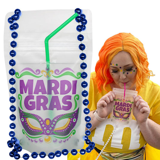 Mardi Gras - Wearable Drink Pouches (12 oz) - Purple Beads