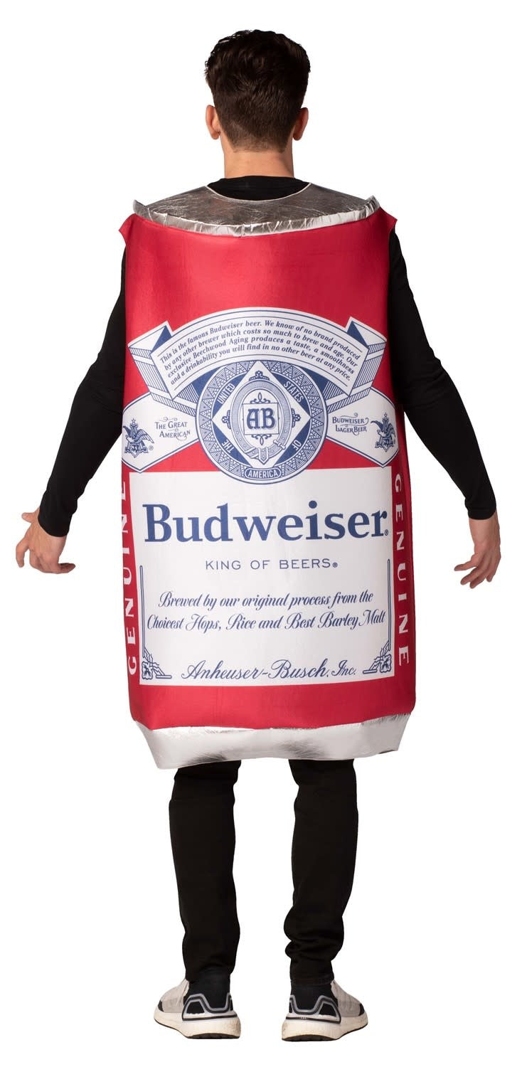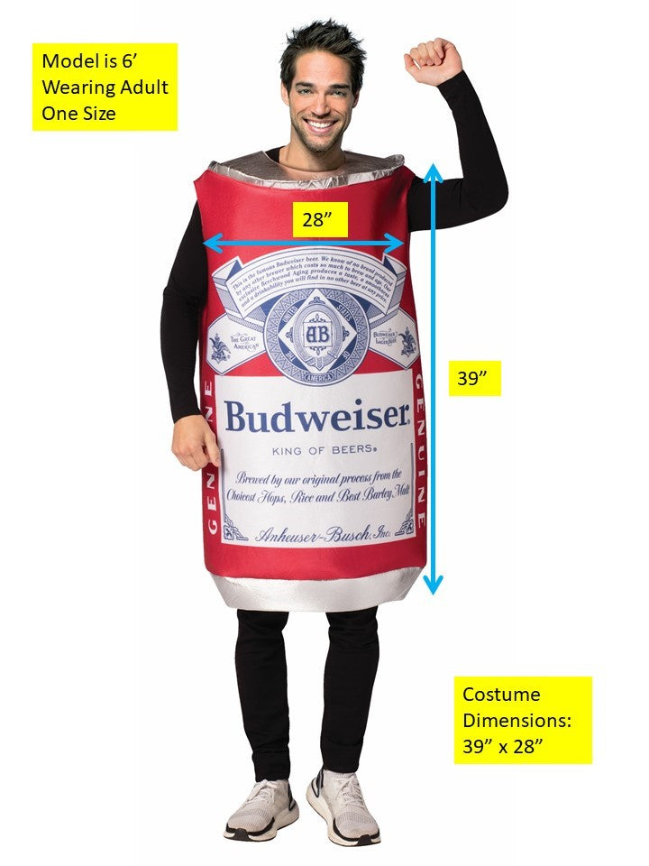 The perfect Halloween Costume for the beer Budweiser drinker. Wear the costume, drink the beer, party all night, Repeat! Classic, Iconic & Unisex Fit for Men and Women. Pullover costume worn over clothing (or not!) for party friendly wearing. Printed on the front and back. One Size Fits Lots of Body shapes! Grab your best buds and go as a 6-Pack, 12-Pack, or if you are really popular, go as a Full Case! Officially licensed by Anheuser Busch to Rasta Imposta. Check for sewn-in tags for authenticity.