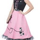 An iconic dress style of 50’s Americana. The 50's Sweetheart costume is a one piece dress. It comes with a black pettiskirt, a belt with buckle, and a set of iron on letter monograms.