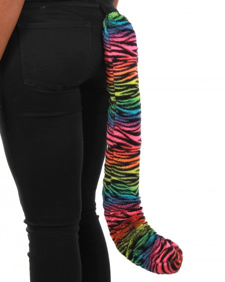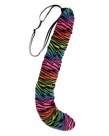You'll be the pride of the Party Jungle in this dazzling Neon Rainbow Tiger Deluxe Plush Tail by elope.