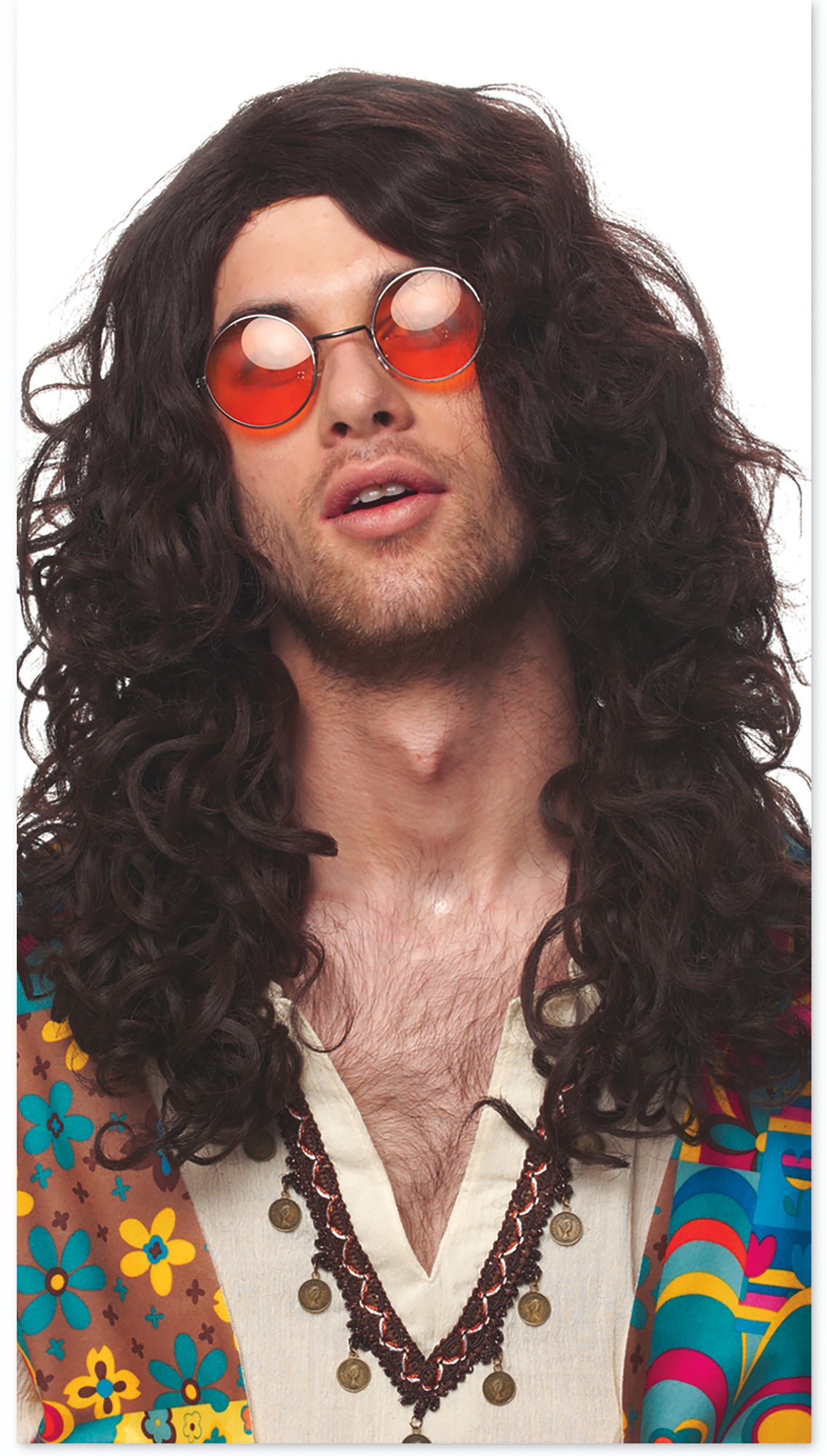 Totally groovy! Check out this awesome Hippie Rock Wig from Franco for a great Halloween costume or look this year! This crazy, curly brown hairstyle is perfect for a 70's rock star or hippie costume for Halloween! This long wig goes past the shoulders and has a wild, curly appearance!