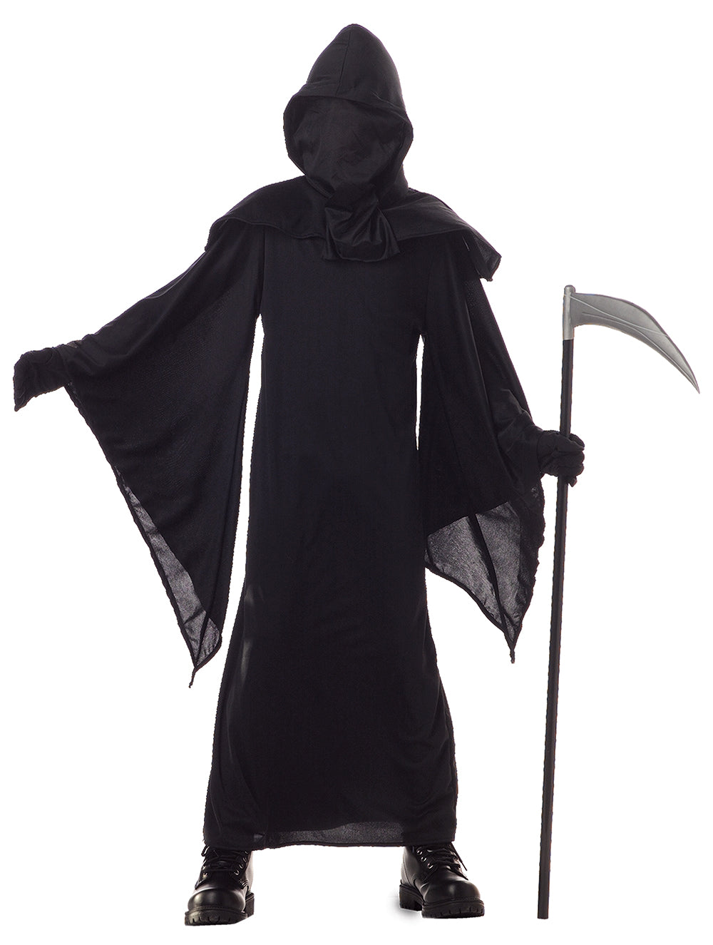 This one is a faceless classic. The Horror Robe comes with a hooded robe with face cover. Not included gloves, scythe, shoes.
