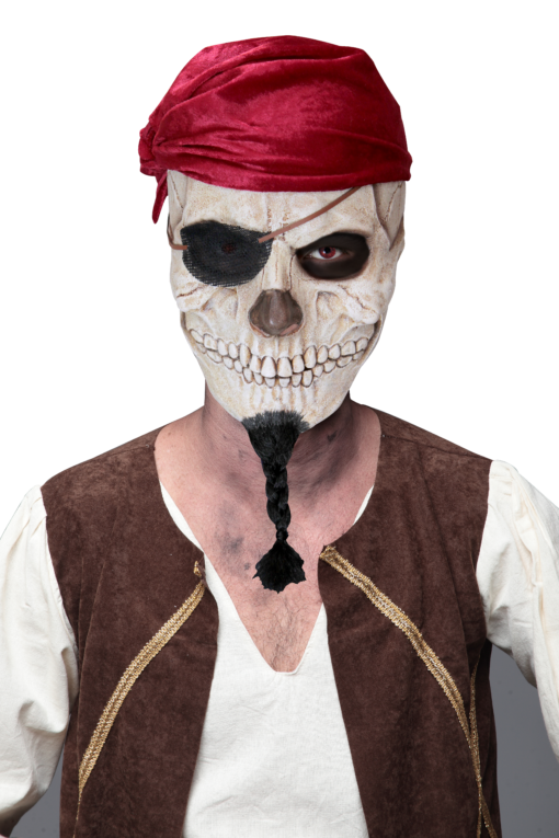 Get under your skin and rattle some bones this Halloween with this awesome Pirate Skull Mask from Ghoulish Productions! The skeleton is one of the most classic and beloved Halloween creatures, and I believe that we all have a skeleton deep down inside of us somewhere. This mask is expertly sculpted and painted, and has a lot of character with the attached eyepatch, scarf, and pirate beard! This guy must've gone down with his ship! A great twist to a pirate costume!