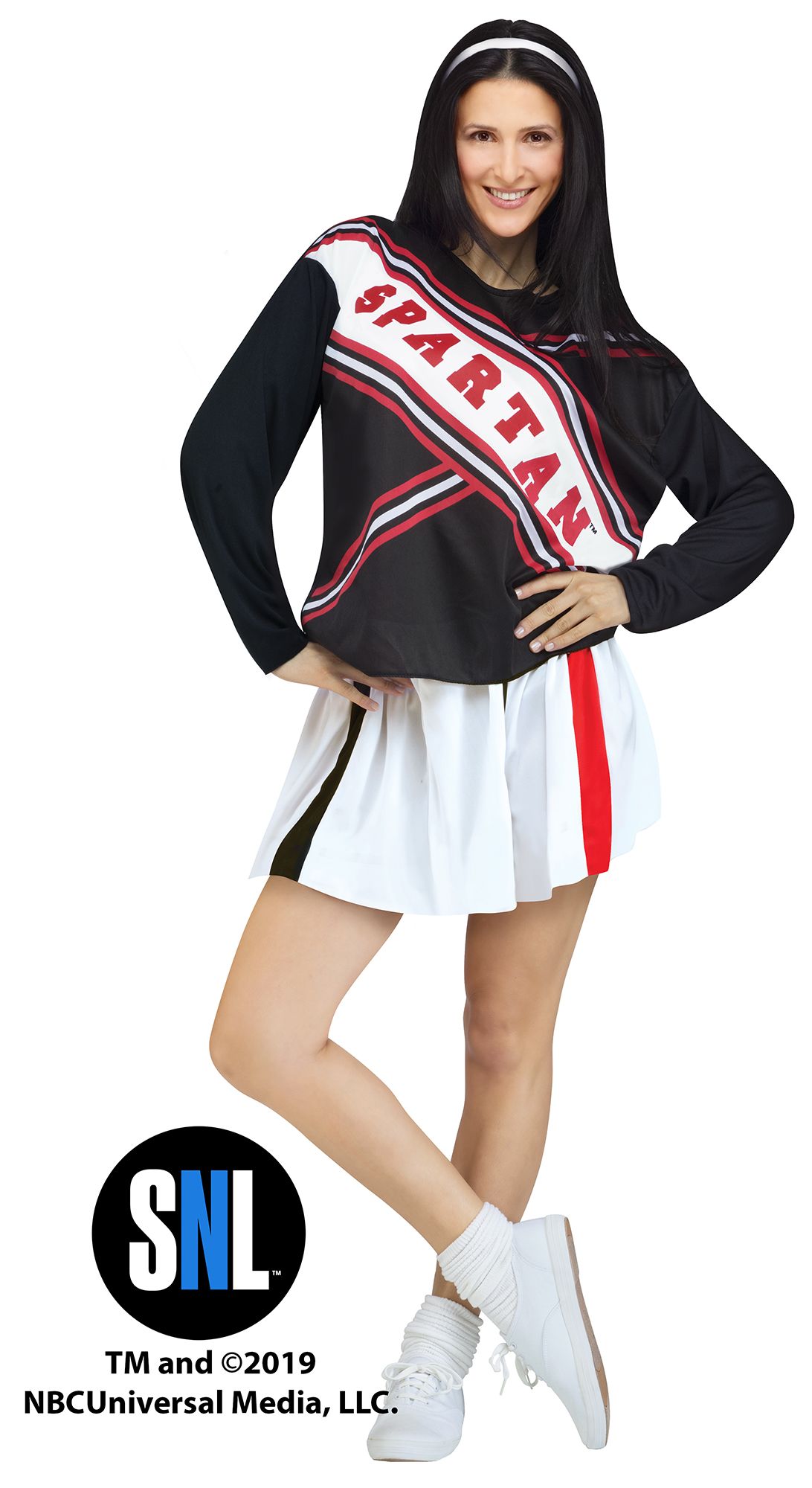 They've got spirit and whether or not you want them to be, they're here to share it! It doesn't matter that they didn't make it onto the cheerleading squad, they're gonna cheer for you! Dress up this Halloween as the Spartan Spirit Cheerleaders from SNL's iconic sketches with Will Ferrell and Cheri Oteri! This costumes comes with the "Spartan Spirit" Cheerleading Uniform from the sketch, the red, white, and black cheerleading top and skirt