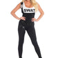 Sometimes when you're playing good cop, bad cop, it's fun to be the bad cop. This amazing S.W.A.T. Bombshell Costume will have everyone on their best behavior and surrendering without much of a fight! You’ll be ready for action in the ultra-sexy suspender jumpsuit with SWAT logo and badge accent, garter strap belt, and toy walkie talkie. Take your look to the next level with Leg Avenue’s fingerless gloves, sold separately.