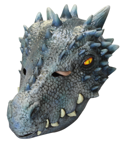 ROOOOARRR! Breathe fire and tear the terrified village apart with this amazing Winter Dragon mask from Ghoulish Productions! This mask is expertly molded and beautifully painted to look like a dragon's head, covered in scales and horns, with glowing yellow eyes, and fangs, in a beautiful blue-purple color all over! Great for Halloween costumes and Renaissance Faires!